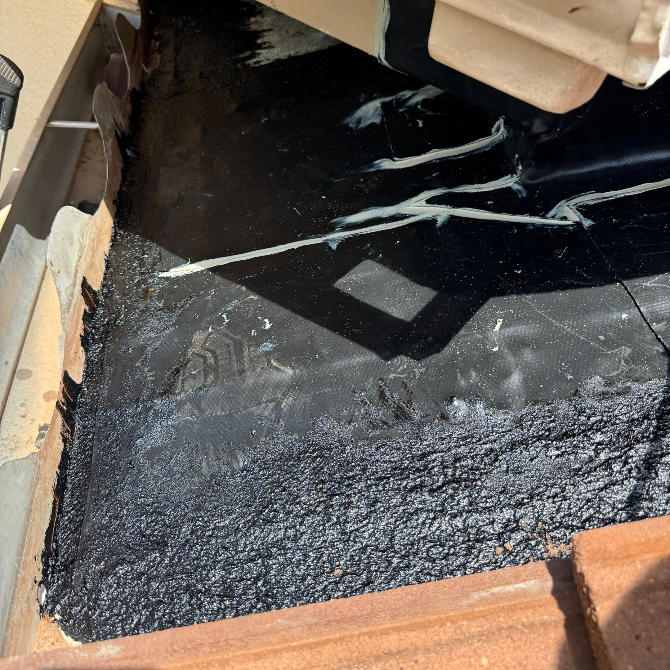 Our team removed the failed materials, replaced the damaged wood decking, and installed a multi-layer waterproofing system with proper metal flashing integration. This thorough approach ensures that the roof is not just “patched” on the surface, but fully restored from the inside out to prevent mold and structural rot.