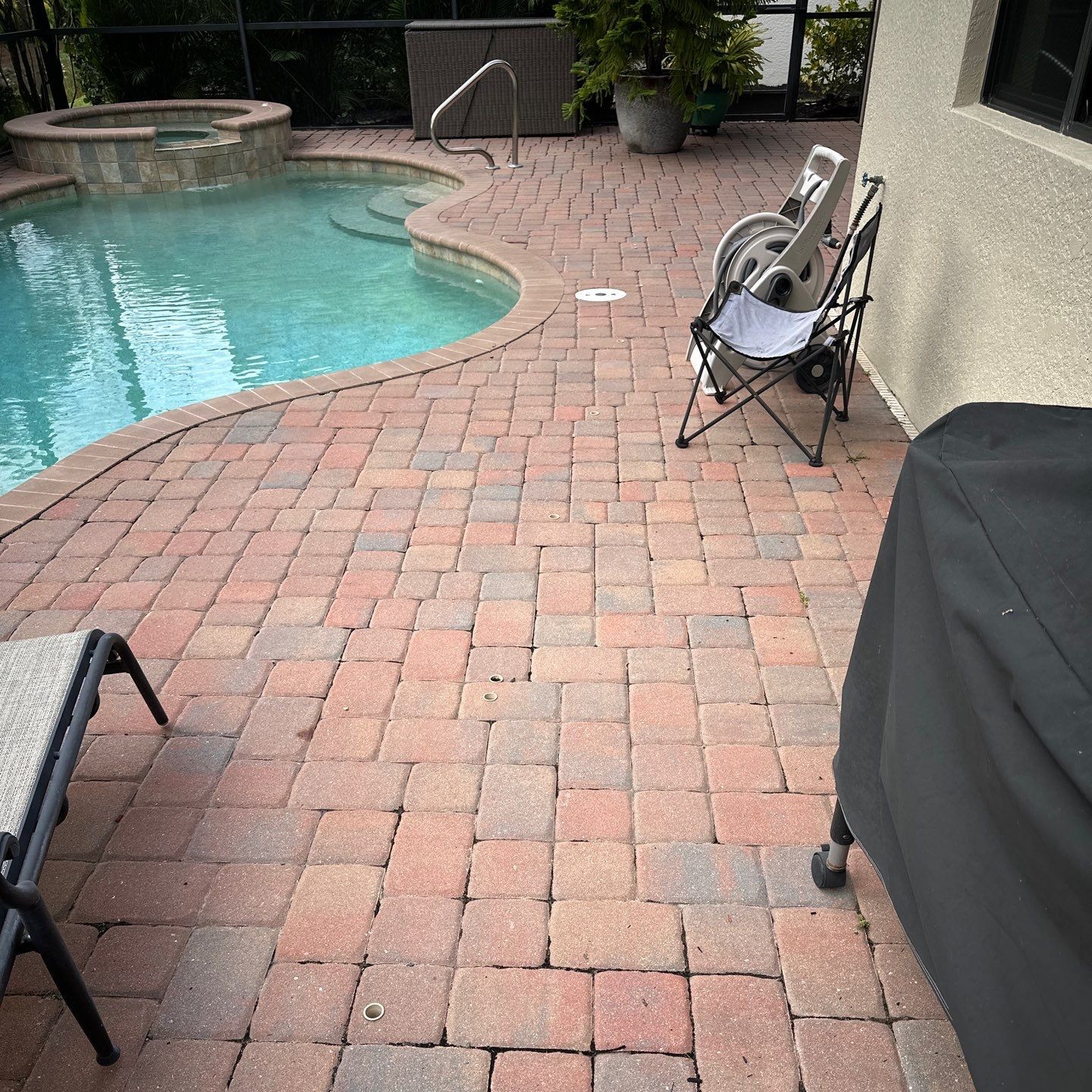 Following the roof restoration, we shifted our focus to the pool deck and patio area. We performed a deep pressure wash and sanitization of the pool pavers, removing years of grime and biological growth. The result is a revitalized outdoor living space and a roof that looks brand new, significantly boosting the property’s overall curb appeal and hygiene.